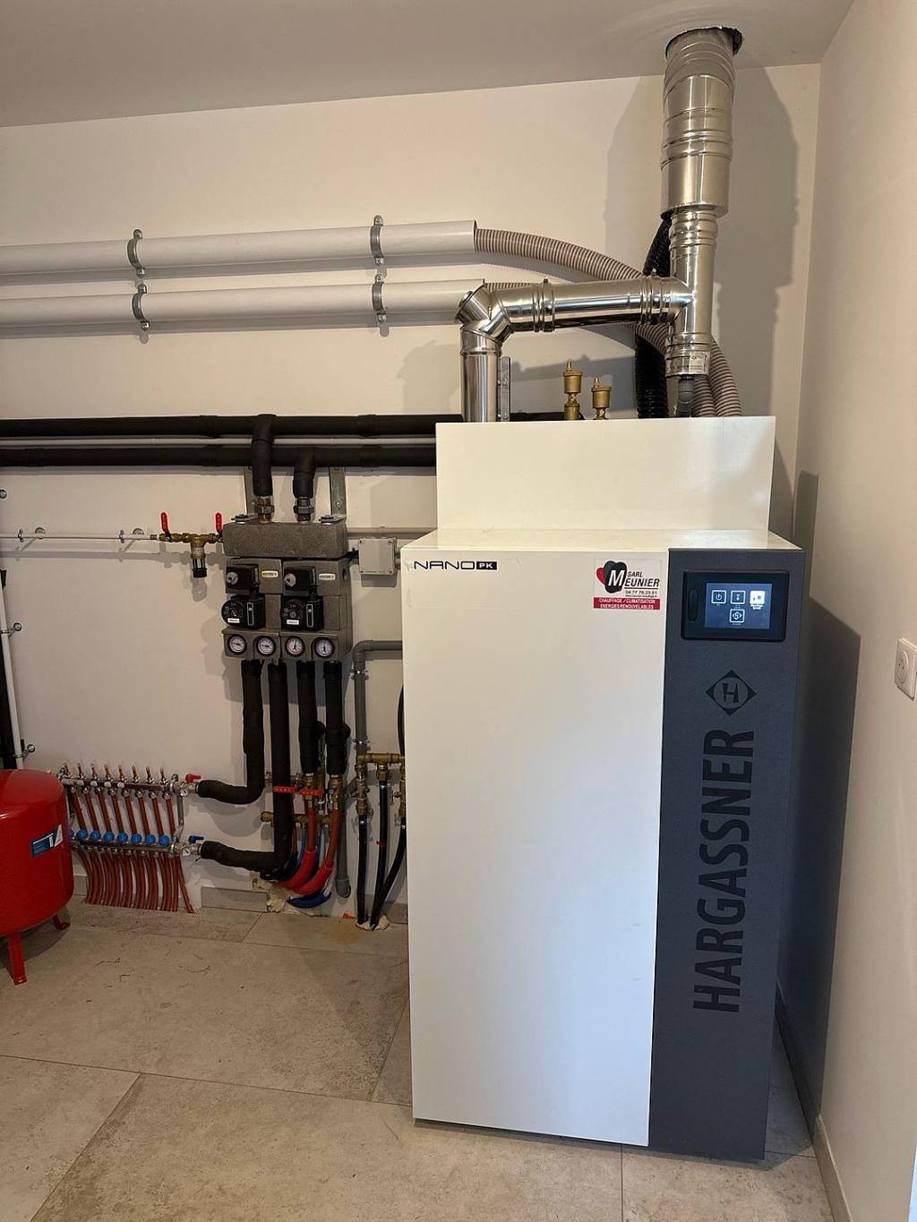 Installation d’une chaudière à granulés Hargassner Nano-PK 15 chez Mr et Mme D à Sauvain