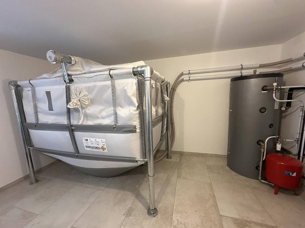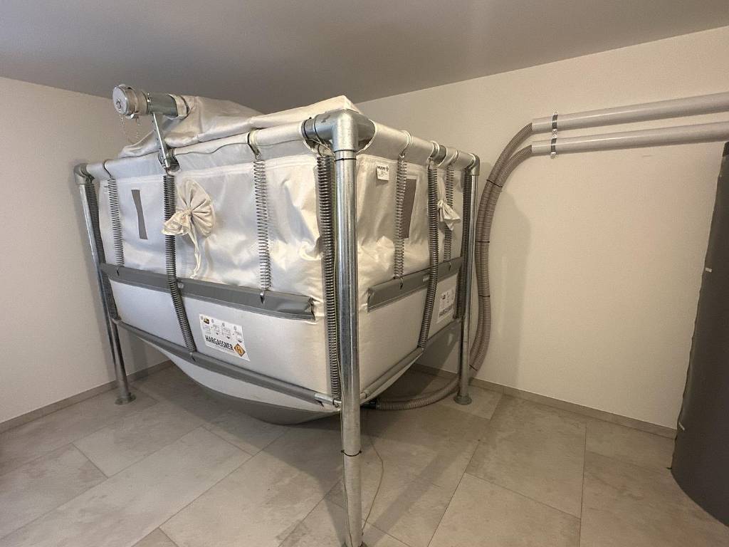 Un silo à granulé d'une capacité de 5 tonnes à été installé, garantissant une autonomie confortable et un approvisionnement sécurisé en granulés.